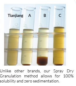 Furthermore, prior to Spray Drying, we use traditional methods of water decoction to ensure optimal efficacy according to classical texts. In comparison to all other factories in mainland China and Taiwan, our granules have 100% solubility and are far more effective in clinics.